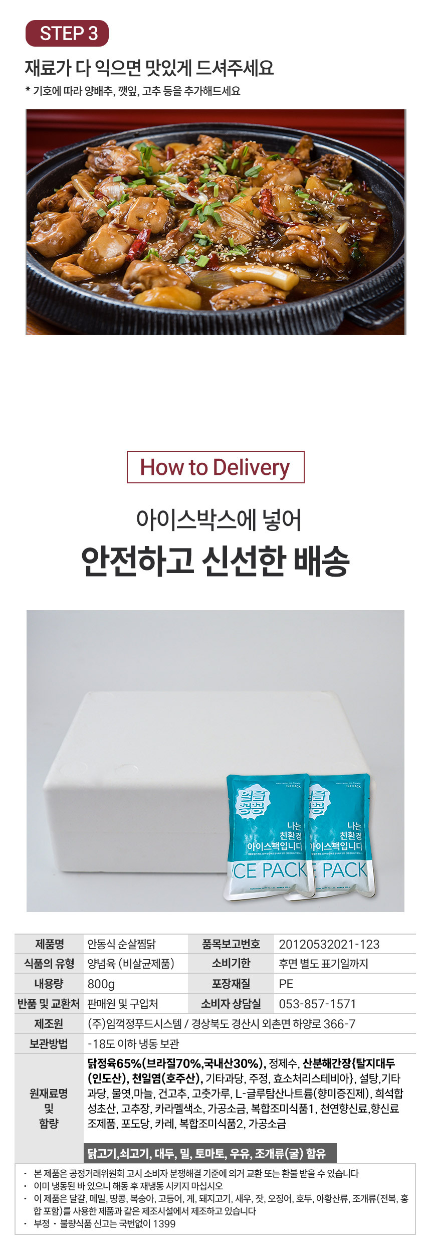 [납작당면 증정] 안동식 순살찜닭 800g